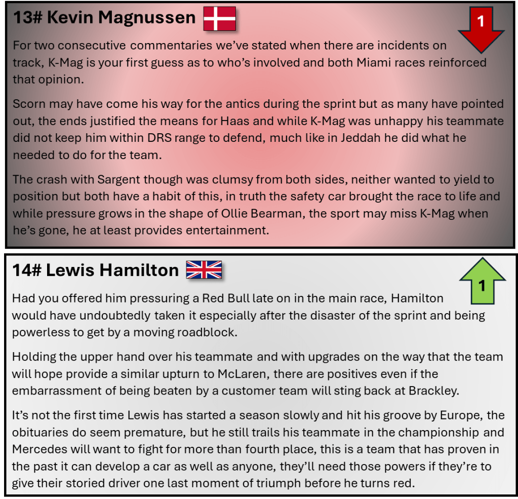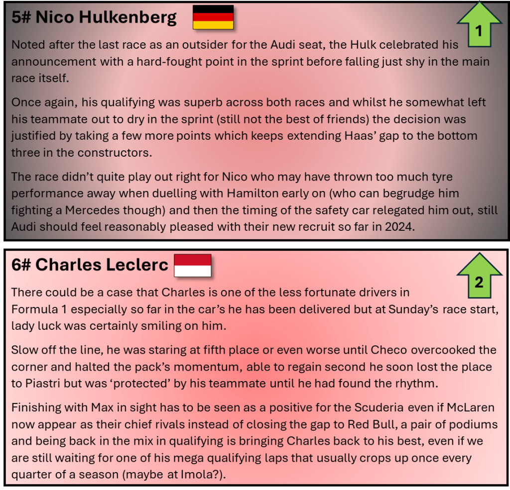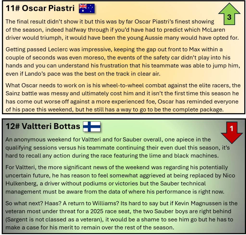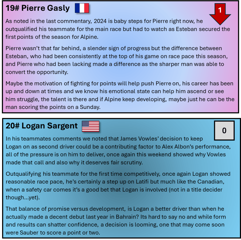 What could compound the matter is if Newey joins a rival, Ferrari and Aston Martin are the favourites but don’t rule out Mercedes if they continue to suffer or even an emotional return to Williams, on the track 2024 hasn’t been perfect but off it, the F1 drama wheel has yet to slow down.